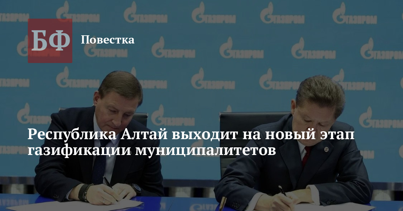 В рамках Петербургского международного газового форума глава Республики Алтай Андрей Турчак и председатель правления ПАО «Газпром» Алексей Миллер подписали программу газификации региона на 2026-2030 годы. В нее вошли 13 населенных пунктов.