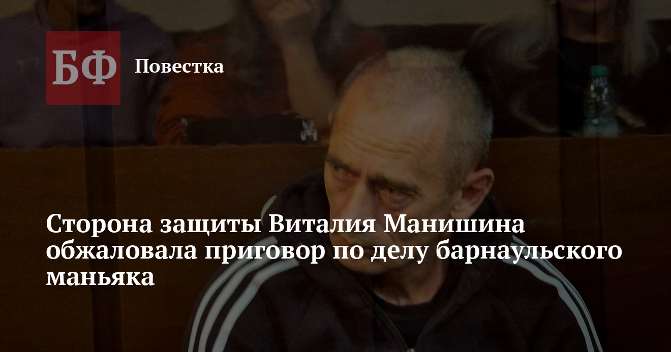 Адвокат Виталия Манишина, осужденного на 25 лет по делу «политеховского» маньяка обжаловала приговор. Информация об этом появилась на сайте Калманского районного суда.