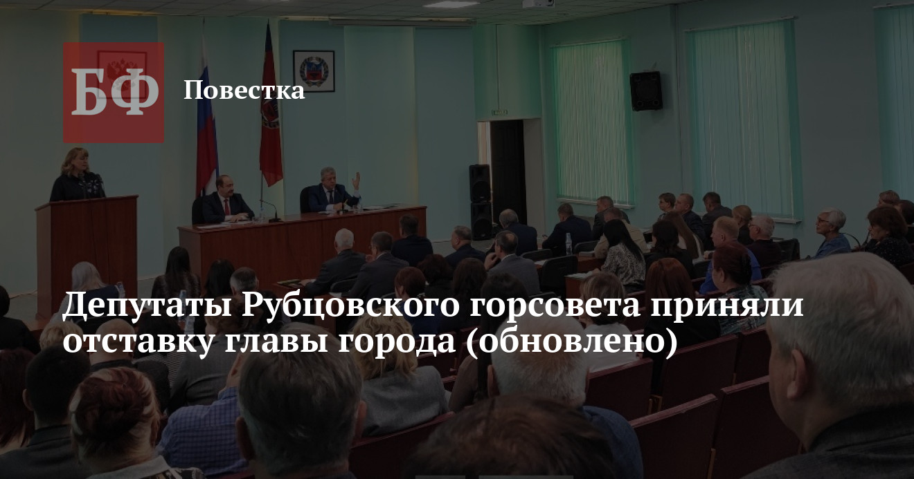 23 октября депутаты Рубцовского городского Совета депутатов рассмотрели заявление мэра Дмитрия Фельдмана о сложении полномочий. Главу города практически единогласно отправили в отставку, сообщил редакции руководитель Рубцовского отделения КПРФ, депутат АКЗС Андрей Чернобай, присутствовавший на сессии.