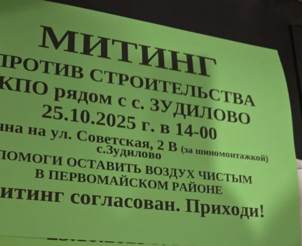 Инициативная группа из числа жителей села Зудилово Первомайского района проведет митинг против строительства комплекса по переработке отходов (КПО) на территории муниципалитета. Об этом сообщила ИА «Банкфакс» одна из активисток Яна Лиценберг.