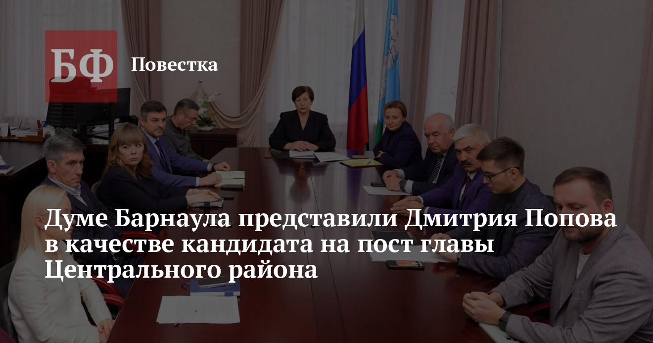 29 октября депутаты Барнаульской гордумы встретились с кандидатом на должность главы Центрального района города Дмитрием Поповым, который ранее возглавлял Быстроистокский район. Народные избранники приняли решение поддержать его кандидатуру на предстоящей сессии.