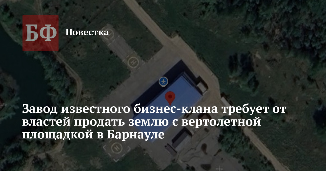 Арбитражный суд Алтайского края принял к рассмотрению иск ООО «Барнаульский комбинат железобетонных изделий № 1 им. В. И. Мудрика» семейства Вдовиных к Алтайкрайимуществу. Предприятие требует обязать ведомство заключить с ним договор купли-продажи земельного участка на Правобережном тракте Барнаула, на котором расположен вертолетный ангар и посадочная площадка, следует из материалов судебной картотеки. В организации пояснили «Банкфаксу», что она является арендатором этой территории.