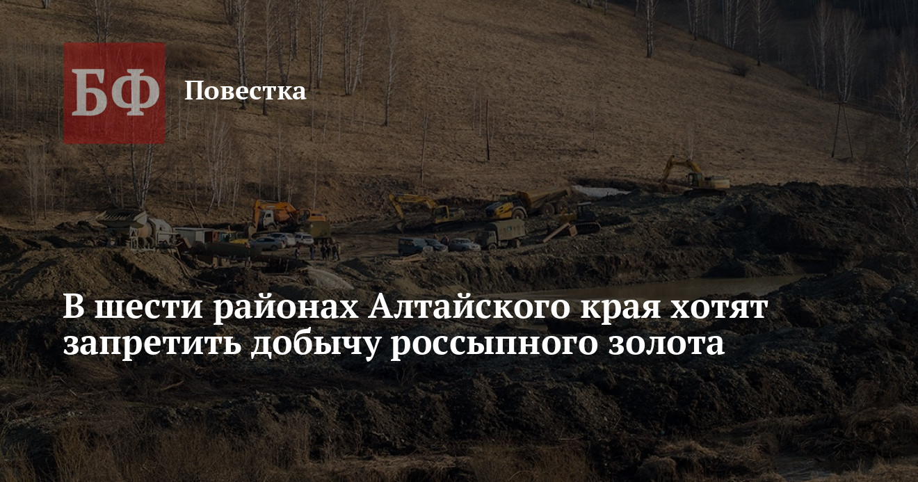 В обращении указано, что объемы добычи россыпного золота в регионе составляют всего лишь 0,1-0,2% от объемов в стране. За 10 лет от компаний, которые вели добычу в крае таким образом, в консолидированный бюджет Алтайского края поступило только 152,6 млн рублей налогов.