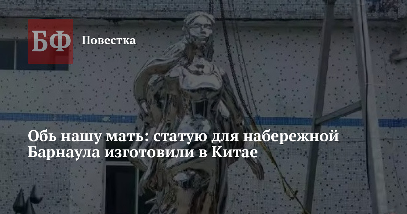 Четырехметровую скульптуру девушки из легированной стали, олицетворяющую реку Обь и установленную на набережной Барнаула, сделали в Китае. Такое предположение появилось у барнаульцев в связи с тем, что они нашли очень похожую статую на известном китайском маркетплейсе Taobao, а также видео в TikTok с процессом ее изготовления. Одно из алтайских СМИ и краевые паблики успели назвать монумент «копией», вероятно, намекая на то, что Барнаулу достался ширпотреб. Однако «Банкфаксу» удалось связаться непосредственно с автором скульптуры по имени Ванг, который подтвердил, что установленная на барнаульской набережной дама - это его рук дело и других таких пока никто не делал.