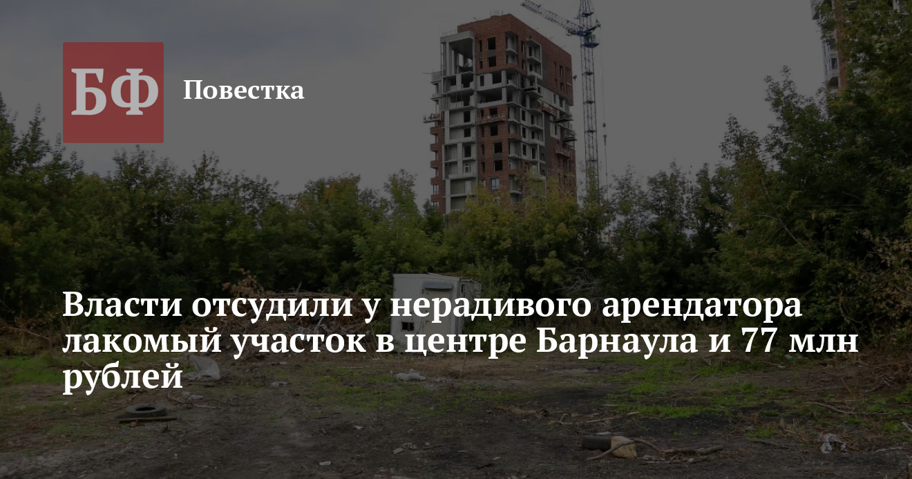 МТУ Росимущества в Алтайском крае и Республике Алтай и Павел Стукошин заключили договор аренды участка 12 ноября 2024 года. Но мужчина не стал вносить арендную плату – в квартал следовало платить по 23,9 млн рублей. В связи с этим в апреле 2025 года ведомство подало иск в Октябрьский районный суд Барнаула, требуя расторгнуть договор аренды и взыскать со Стукошина 77,1 млн рублей, из которых около 60 млн рублей – заложенность по арендной плате, 16,9 млн рублей – пеня.