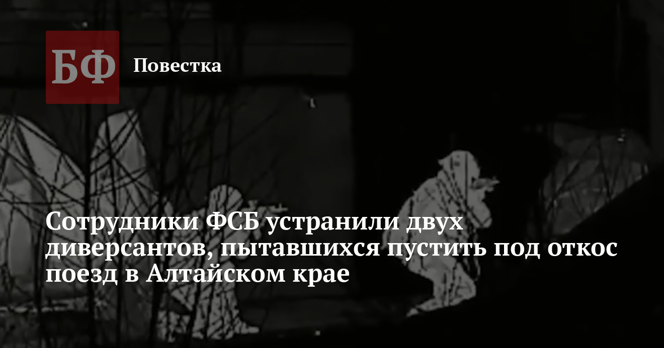 По данным ФСБ, ночью 22 ноября на участке ж/д перегона «ст. Алтайская - ст. Бийск» два жителя Алтайского края пытались установить так называемое сбрасывающее устройство на железнодорожных путях, чтобы нарушить движение составов. Сотрудники УФСБ по Алтайскому краю остановили злоумышленников под мостом, но те оказали вооруженное сопротивление при задержании. В результате ответного огня обоих диверсантов ликвидировали на месте.