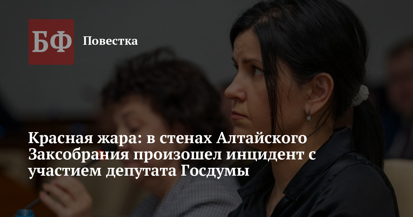 В преддверии очередной сессии Алтайское Заксобрание продолжают сотрясать скандалы, связанные с поведением депутатов и их уголовными преследованиями. Со слов очевидцев, на фоне ситуации с членами КПРФ 26 ноября заседание фракции проходило на повышенных тонах из-за некоего конфликта. Его причина неизвестна, однако, по данным агентства, в ходе заседания лидер алтайских коммунистов Мария Прусакова якобы эмоционально выражала свое недовольство в отношении ряда депутатов.