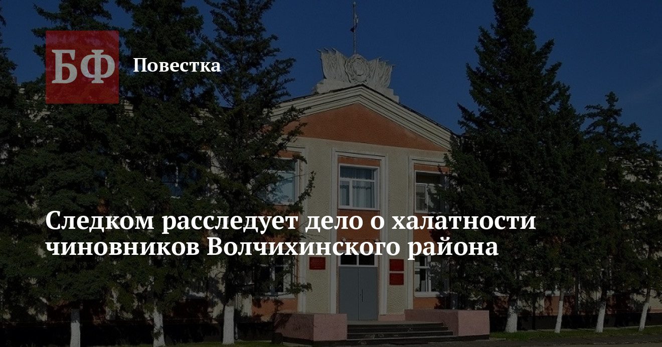 Органы СУ СКР по Алтайскому краю расследуют уголовное дело по факту халатности должностных лиц администрации Волчихинского района. Об этом в ответе на запрос «Банкфакса» сообщили в ведомстве.