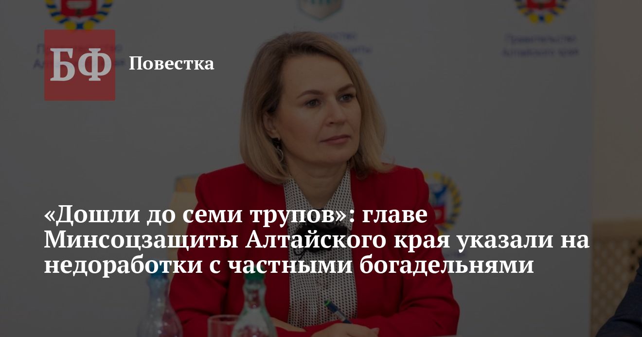 Министру соцзащиты Алтайского края внесли представление на фоне проверок в тогульской богадельне