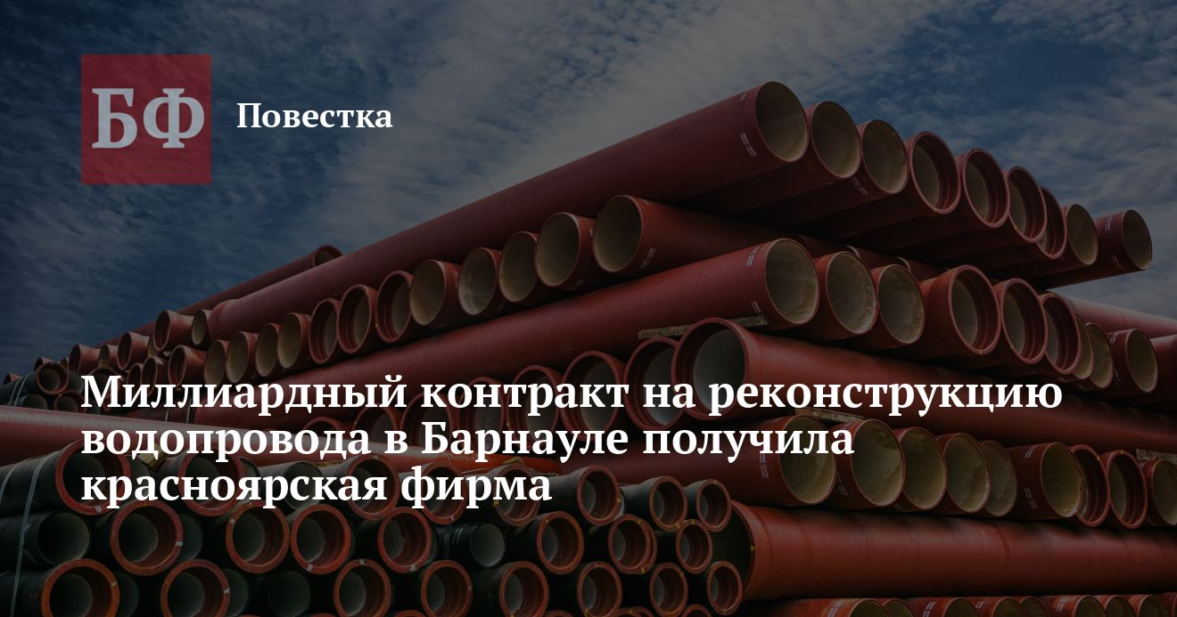 24 декабря комитет по энергоресурсам и газификации Барнаула заключил контракт на реконструкцию водопровода в центре города с канским ООО «Водоканал-Сервис». Эта фирма победила в соответствующем конкурсе, обойдя четырех конкурентов. В их числе было барнаульское ООО «СМК ВиКС».
