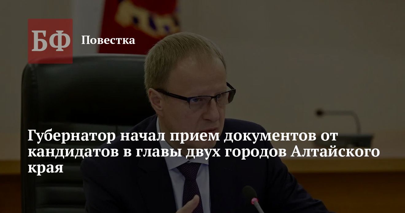 Прием документов для определения кандидатов в главы муниципальных образований ведется в соответствии с указом губернатора региона. Внести свое предложение вправе парламентские политические партии, Совет муниципальных образований Алтайского края, Всероссийская ассоциация развития местного самоуправления, а также Общественная палата региона.