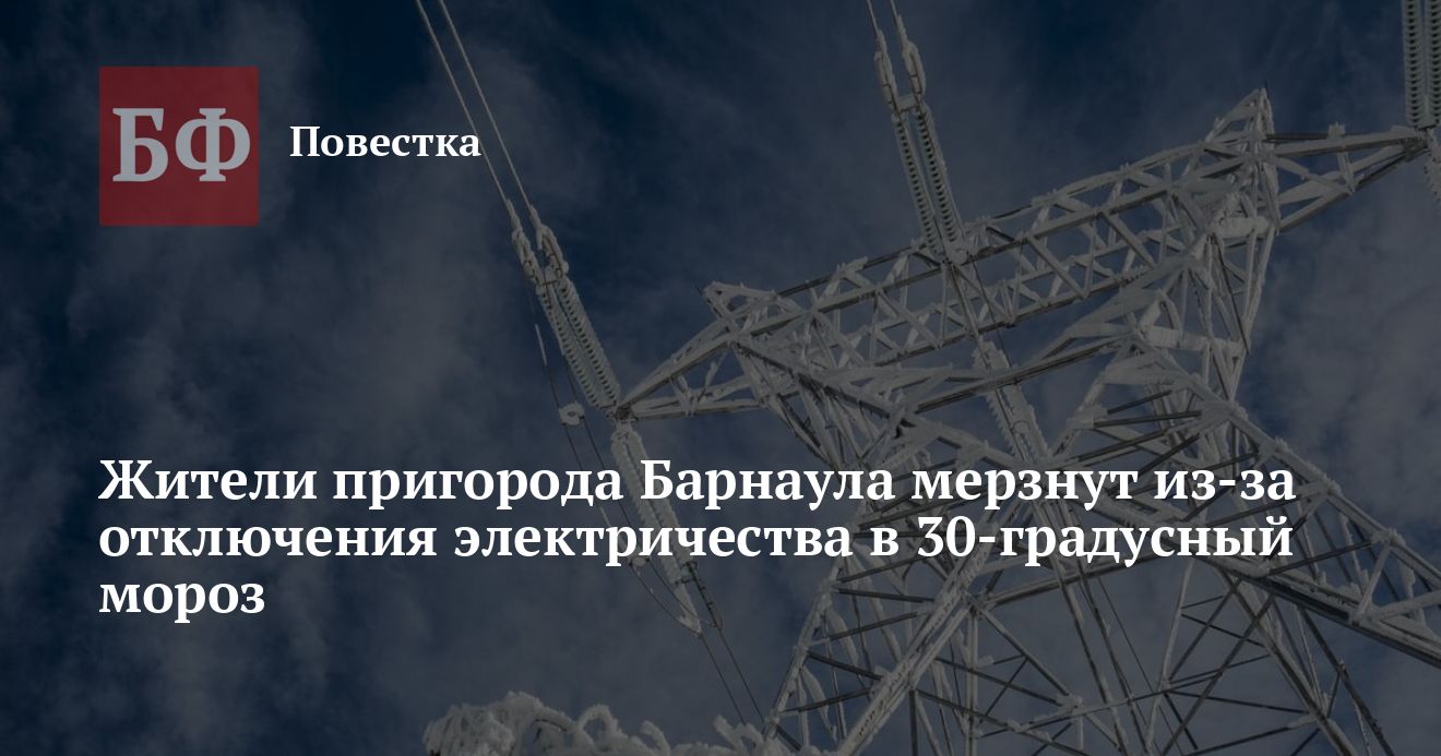 В Telegram-канале Barnaul 22 жительница села Бельмесево рассказали об очередном отключении света в населенном пункте ночью 16 января. «Снова в 40-градусный мороз! Люди спят. Свет отключается - котлы газовые замерзают и не запускаются даже от генератора. В домах холодно. Почему, как наступают морозы, дунул ветерок, прошел дождик, сразу отключается свет? Уже какую зиму мы так страдаем», - пожаловалась женщина. Она обратилась к администрации Барнаула и прокуратуре Алтайского края с просьбой провести проверку компетентных организаций, «от которых страдает весь поселок Бельмесево».