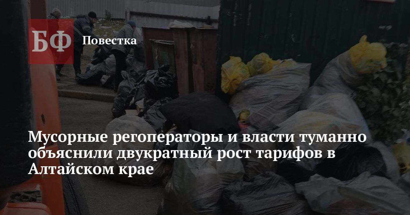 По ее мнению, тарифы на вывоз мусора в Алтайском крае были «катастрофически низкими, что не позволяло региональным операторам оказывать услугу в полном объеме». «Соседние регионы уже давно ушли за 150 рублей. Новосибирская область - 140-160 рублей с человека. Кемеровская область - 190 рублей. Красноярский край - вообще 230 рублей», - отметила собеседница.