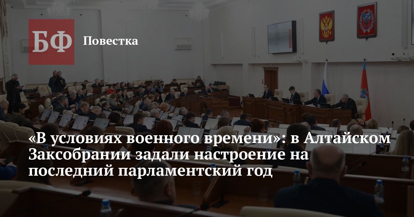 29 января депутаты Алтайского Заксобрания восьмого созыва открыли сессией свой последний парламентский год. Атмосфера грядущих сентябрьских выборов ощущалась с самого начала заседания – неожиданно для многих спикер АКЗС Александр Романенко, пожалуй, впервые в этом созыве выступил с докладом перед коллегами. Он призвал депутатов не гнаться за политическими очками в условиях военного времени. Впрочем, кажется, вняли его словам не все - практически по каждому, казалось бы, формальному вопросу повестки у парламентариев возникали дискуссии, чего не наблюдалось уже несколько месяцев.