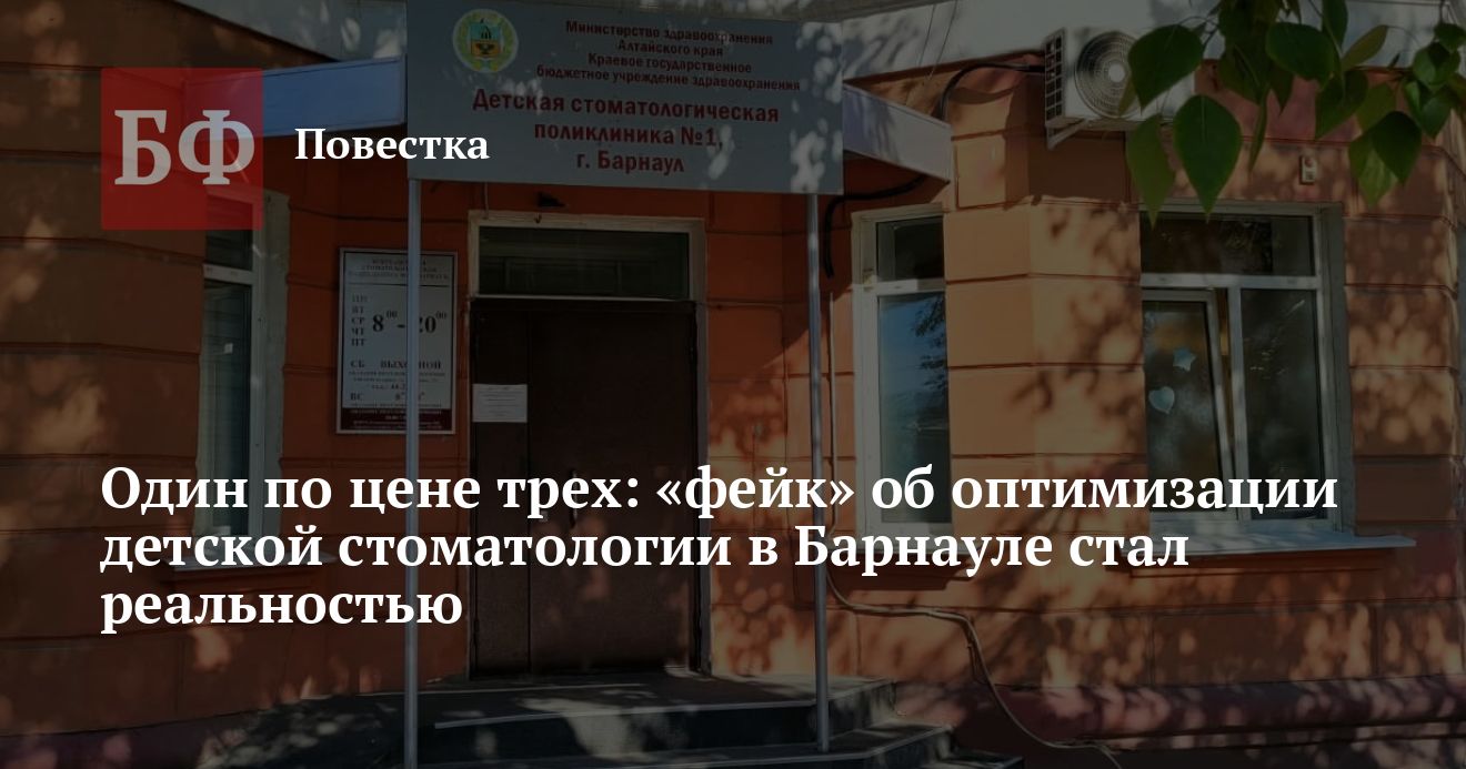Возможность объединения двух барнаульских детских стоматологических поликлиник (в городе их всего две) и краевой детской стоматологии публично обсуждали летом 2025 года. Началась эта история с громкого скандала: в июле врачи и медсестры поликлиники № 1 написали заявления на увольнение, протестуя против смены руководства. Один из сотрудников рассказывал «Банкфаксу», что главврача поликлиники № 1 Елену Желонкину просят уволиться по собственному желанию в пользу Оксаны Щербаковой, которая возглавляла поликлинику № 2. Под своим началом Щербакова должна была объединить краевую детскую стоматологическую поликлинику и две упомянутые городские.