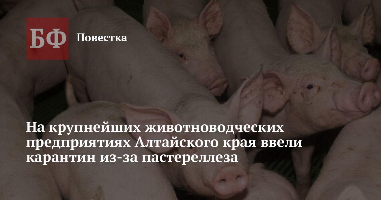 В Тальменском районе на территории свинокомплекса ООО «МитПром» и молочного предприятия ООО «ЭкоНива Алтай» объявлен карантин. Согласно документам, опубликованным на правовом портале региональным управлением ветеринарии, на обоих предприятиях выявили вспышку пастереллеза.