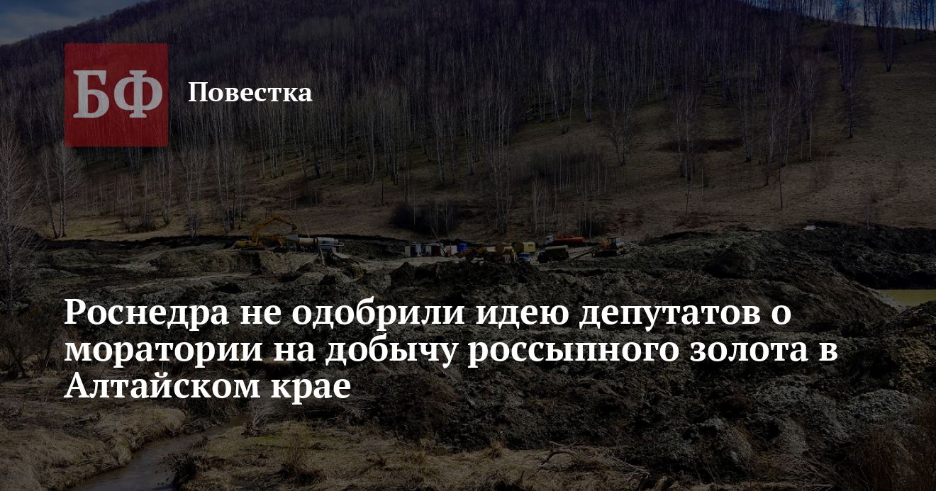 Напомним, что алтайский парламент предлагал ввести мораторий на добычу на разведку и добычу россыпного золота в Алтайском, Тогульском, Заринском районах, Солонешенском, Чарышском, Залесовском и Змеиногорском округах.