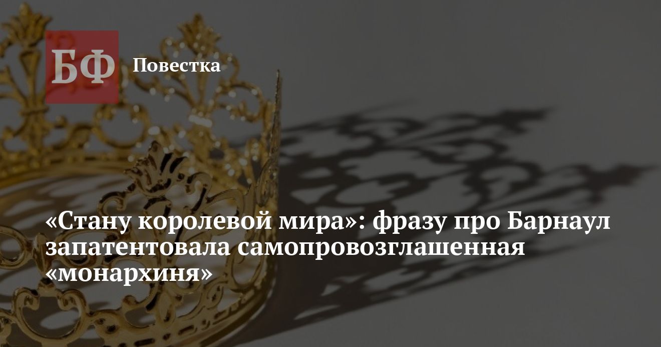 Стало известно, кто запатентовал фразу «Барнаул - столица мира» - свадебный и детский фотограф из Барнаула Ольга Акименко, которая в соцсетях себя представляет как Алена Акименко. Женщина рассказала «Рекламному порталу», что зарегистрировала товарный знак, потому что хочет стать «королевой мира».