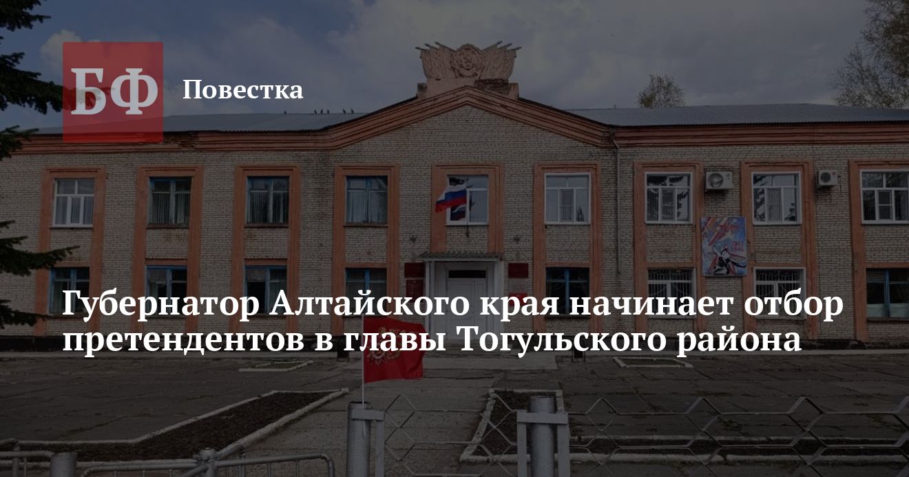 С 18 февраля губернатор Алтайского края Виктор Томенко начинает прием документов для отбора кандидатур на должность главы Тогульского района, которая стала вакантна в конце 2025 года. Об этом сообщила пресс-служба главы региона.