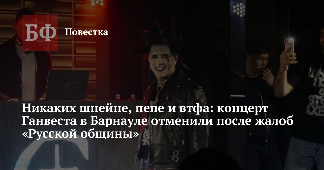 Концерт Ганвеста в Барнауле должен был пройти 21 февраля в клубе «Опера» на улице Мало-Олонской, 28. Билеты на выступление продавались по цене от 1000 рублей, следует из данных онлайн-касс. Мероприятие привлекло внимание кибердружинников «Русской общины» в Алтайском крае. Активисты заметили, что на сайте по продаже билетов указано ограничение по возрасту 14+. Это вызвало недовольство активистов. По их мнению, творчество исполнителя пропагандирует употребление наркотиков и аморальное поведение среди несовершеннолетних, нарушает их психическое здоровье, провоцирует на антисоциальное и деструктивное поведение, способствует интеллектуальной деградации. В связи с этим дружинники написали обращения в правоохранительные органы и чиновникам с просьбой провести проверку. В качестве подтверждения своих слов они привели текст из песни рэпера под названием «Вика любит ПЭПЭ», в котором «лирический герой произведения» в деталях описывает свой половой акт с девушкой.