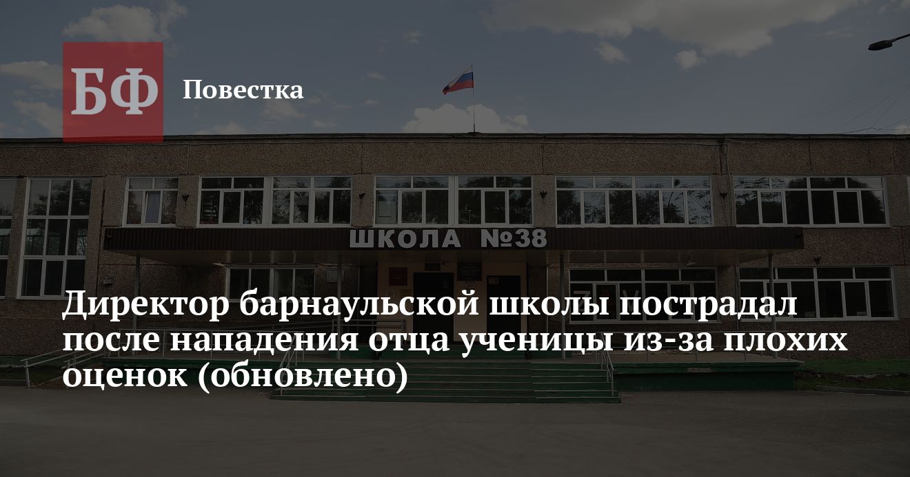 В Барнауле разъяренный отец напал на директора МБОУ «СОШ № 38» Евгения Васина и угрожал ему расправой прямо в учительской. В учебной организации «Банкфаксу» сообщили, что поводом агрессии могло стать недовольство родителя оценками дочери и жалоба педагогов в ПДН.
