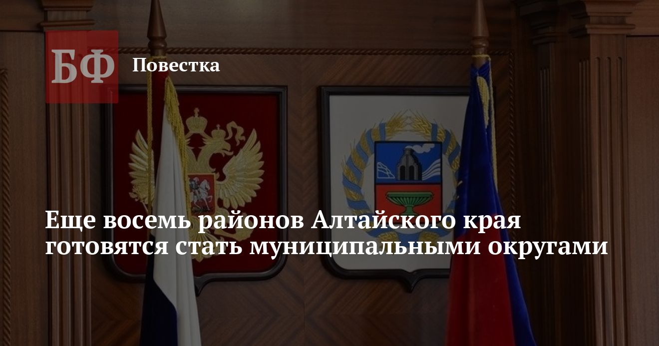 Напомним, что 27 февраля аналогичное решение приняли депутаты собрания Ребрихинского района. На данный момент в Алтайском крае в муниципальный округ преобразовано 13 бывших районов и городов.