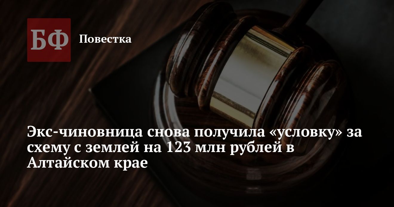 В Алтайском крае суд огласил обвинительный приговор в отношении бывшего председателя комитета по управлению муниципальным имуществом и земельным отношениям администрации Первомайского района Алены Лаптевой, которую обвиняли в превышении полномочий при предоставлении земельных участков на 123 млн рублей. Экс-чиновнице дали условный срок, уточнили «Банкфаксу» в прокуратуре Алтайского края.