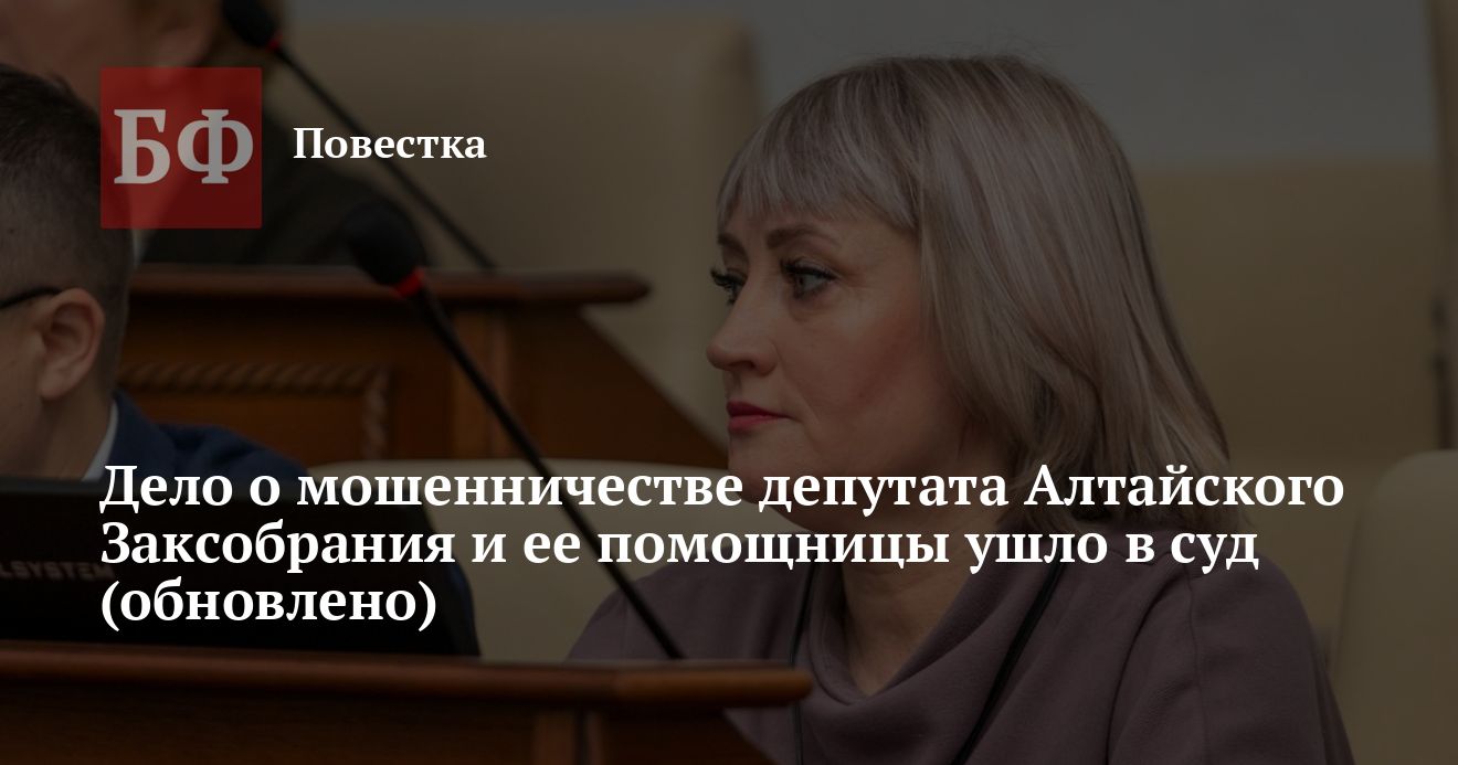 В Центральный районный суд Барнаула направили уголовное дело в отношении депутата Алтайского Заксобрания от фракции КПРФ Людмилы Клюшниковой и ее помощницы Светланы Кербер, которым вменяют мошенничество в особо крупном размере. Об этом сообщили источники «Банкфакса». Если орган правосудия вынесет обвинительный приговор, то парламентария ждет еще одна судимость.