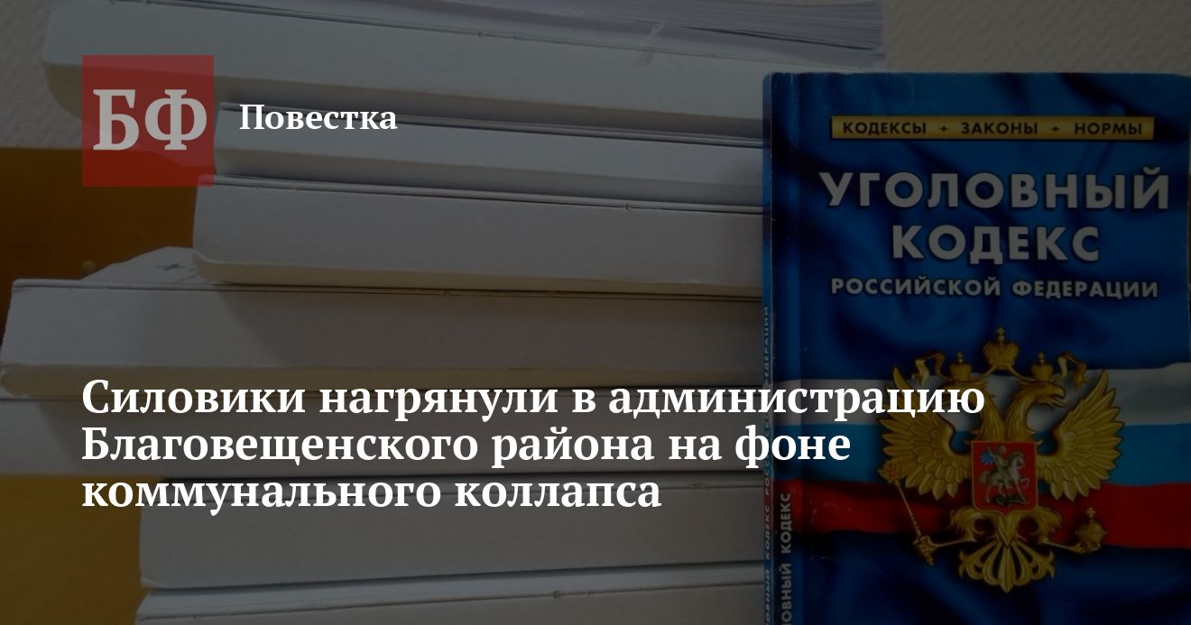 По данным источников «Банкфакса», оперативные мероприятия провели утром 24 марта. В администрации Благовещенского района и администрации Благовещенского поссовета, а также в ресурсоснабжающем МУП «Райтоп», вероятно, работали представители следкома. Силовую поддержку им оказывали силовики в масках, добавили очевидцы. Проводились ли задержания, пока неизвестно. Официальных комментариев от правоохранительных органов пока не было.