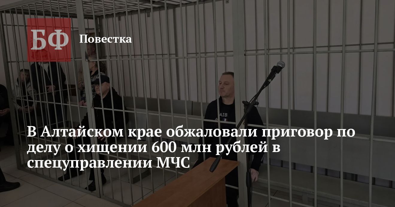 Бийский городской суд 6 апреля зарегистрировал апелляционную жалобу по уголовному делу о присвоении и растрате более 600 млн рублей сотрудниками спецуправления федеральной противопожарной службы № 36 МЧС России в наукограде. Соответствующая информация размещена в карточке дела. Ранее руководителя ведомства Виктора Великодного приговорили к 11 годам колонии общего режима.