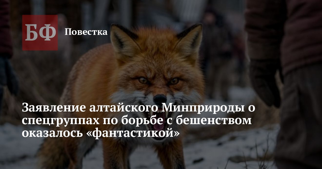 13 апреля «Вести Алтай» сообщили о создании в регионе специальных групп в связи с ростом заболеваемости бешенством. По данным СМИ, они обязаны реагировать на появление в границах населенных пунктов диких животных, которые могут являться переносчиками инфекции. Журналисты отметили, что создать спецотряды рекомендовало муниципалитетам алтайское Минприроды. Пока подобная структура якобы появилась лишь в Немецком муниципальном округе, утверждалось в сюжете.