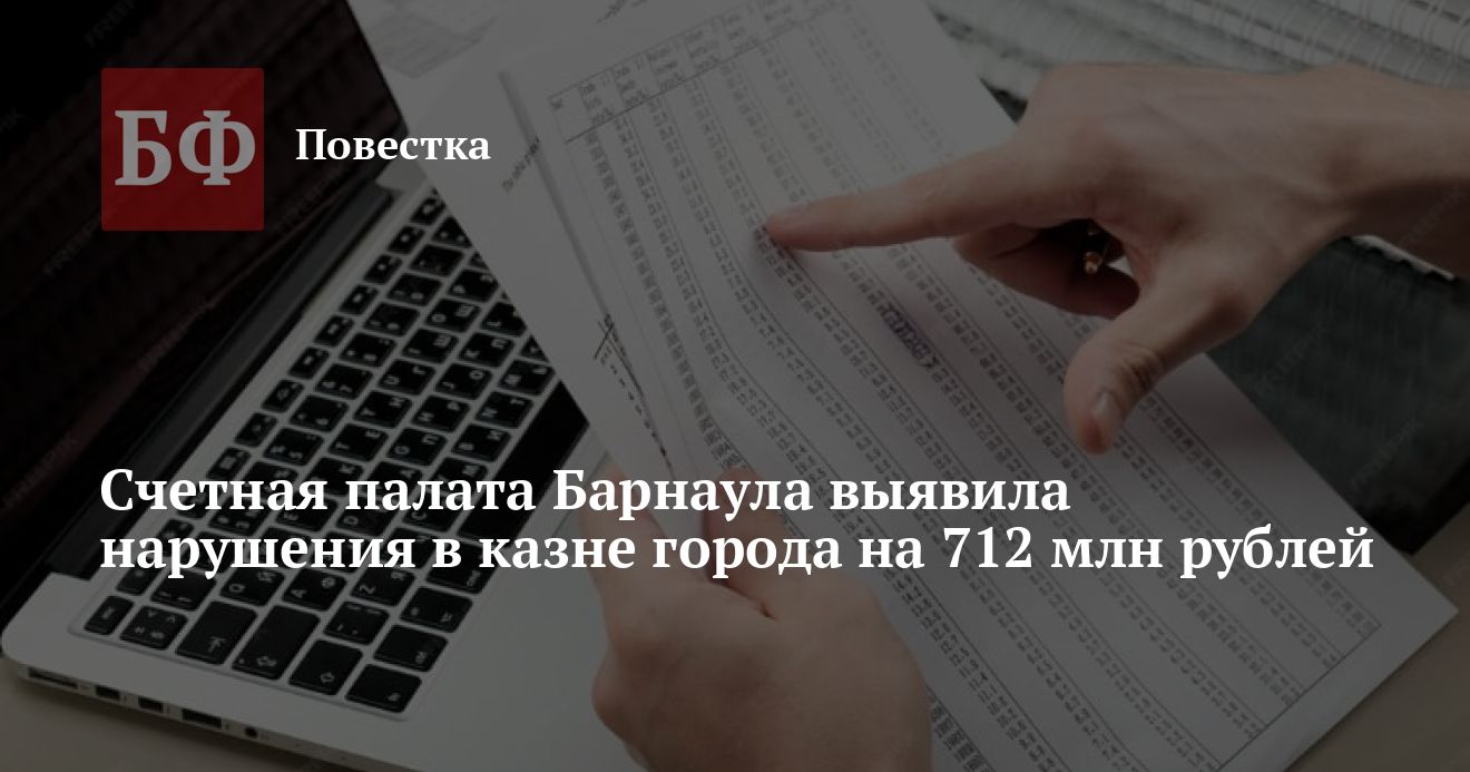 В 2025 году Счетная палата Барнаула проверила более 85 млрд рублей финансовых средств и муниципального имущества. Ведомство выявило 1310 нарушений на общую сумму более 712 млн рублей, говорится в пояснительной записке к отчету о деятельности Счетной палаты города за прошедший года (копия документа имеется в распоряжении «Банкфакса»), который будет представлен депутатам барнаульской Думы 17 апреля.