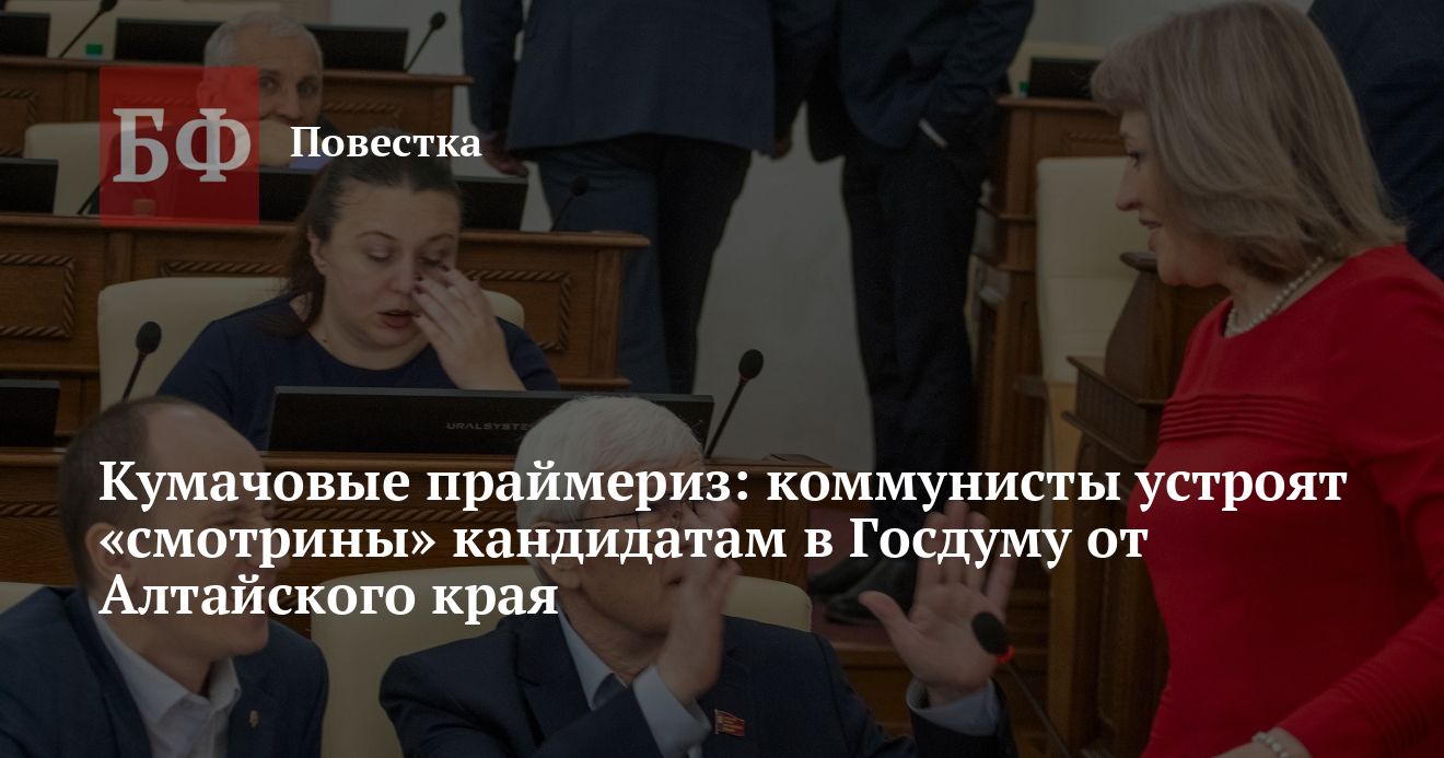 Согласно данным платформы «Народный кандидат – КПРФ», одномандатные избирательные округа в Алтайском крае были распределены между действующими народными избранниками, которые с точки зрения партии, зарекомендовали себя наиболее эффективными кандидатами. Так, по Барнаульскому округу от коммунистов пойдет руководитель фракции КПРФ в Алтайском Заксобрании, глава контрольно-ревизионной комиссии алтайского крайкома Андрей Кривов. В борьбу за победу на Бийском округе включится действующий депутат АКЗС, секретарь по работе с депутатским корпусом алтайского крайкома КПРФ Антон Арцибашев. Наконец, конкуренцию единороссам и оппозиционерам на Славгородском округе составит «лишившаяся» в 2026 году победного для нее в прошлом Рубцовского округа депутат Госдумы от Алтайского края, лидер алтайских коммунистов Мария Прусакова. Судя по всему, персек намерена пролонгировать свои полномочия в нижней палате Федерального Собрания, и как заявляла «Банкфаксу» ранее, готова сделать это на любом из оставшихся округов, в том числе и на Славгородском.