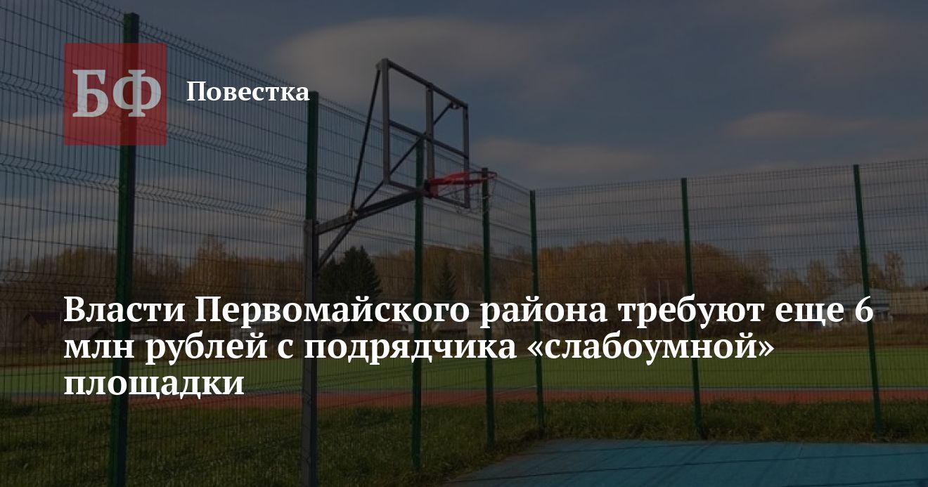 Администрация Первомайского района намерена взыскать около 6 млн рублей с барнаульского ООО «СК «Вавилон» в качестве неустойки за некачественный монтаж «умной» спортивной площадки. Это следует из материалов картотеки Арбитражного суда Алтайского края. Ранее властям удалось отсудить у фирмы 5,7 млн рублей в качестве возмещения убытков.