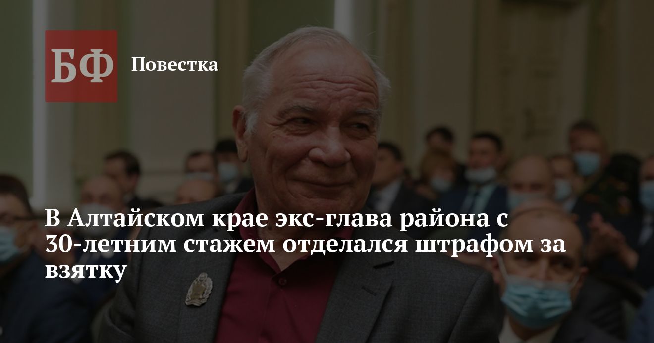 21 апреля Бийский районный суд огласил обвинительный приговор по уголовному делу в отношении бывшего главы Солтонского района Михаила Лудцева, которому вменяли получение крупной взятки. Деньги он получил в период своей работы на посту руководителя муниципалитета, который он занимал более 30 лет. Как следует из сообщения пресс-службы суда, ему назначили штраф в 2,2 млн рублей.