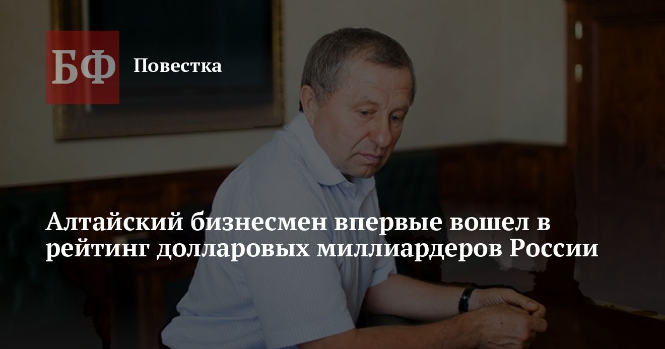 Основатель алтайской торговой сети «Мария-Ра» Александр Ракшин стал новичком рейтинга российских долларовых миллиардеров по версии журнала Forbes. Алтайский бизнесмен разместился на 114-й строчке, а всего в списке 155 богатейших людей России.