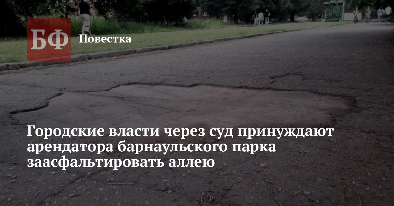 Арбитражный суд Алтайского края рассматривает иск администрации Ленинского района Барнаула к арендатору парка Целинников ООО «Мираж». Власти требуют от компании заменить асфальт на расположенной в пределах парка аллее, следует из документов суда. Об удручающем состоянии дорожки неоднократно сообщали местные жители, заявляя, что покрытие разрушено и мешает прогулкам.