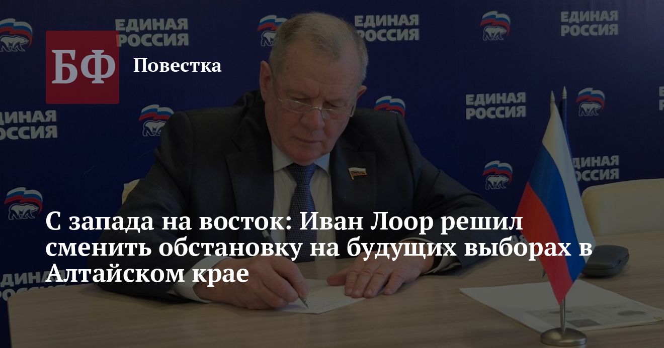 Депутат Госдумы Иван Лоор намерен поучаствовать в выборах в Госдуму на Бийском округе, хотя до этого несколько созывов подряд избирался по Славгородскому. 27 апреля он заявил в своих соцсетях, что поучаствует в праймериз «Единой России», но по какой-то причине не стал разглашать, каких избирателей собирается представлять в федеральном парламенте. В пресс-службе алтайского реготделения ЕР «Банкфаксу» подтвердили, что парламентарий подал документы на Бийский округ.