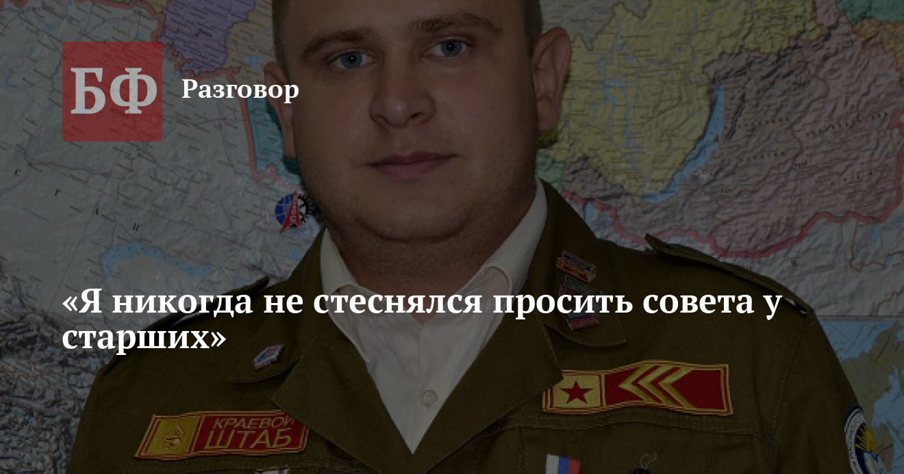 Своего наставника как такового выделить не могу. Человека, который меня «надоумил», как некоторые считают, нет. Я уже об этом говорил. Конечно, существует поддержка от ветеранов студенческих отрядов, работающих в органах власти или уже вышедших на пенсию. Например, Борис Лысенко (возглавлял студотряд «Алтай» в середине 1970-х годов, в начале 2000-х возглавлял управление делами администрации Алтайского края, с 2007 до 2010 года — исполком Алтайского реготделения «Единой России» — прим. ред. БФ).